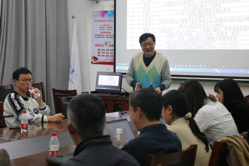 张节末教授早年师从著名学者吴调公先生和冯契先生,学术底蕴深厚,曾多次获批国家社科基金及教育部人文社科研究项目,在《哲学研究》《文学遗产》等权威期刊发表论文多篇。其专著《禅宗美学》获教育部高校科研成果三等奖,《比兴美学》荣获浙江省哲学社会科学优秀成果二等奖。目前,张教授主要致力于中国早期文明与东亚文明关系研究。 在讲座中,张节末教授结合自身主持及指导学生申报国家社科基金项目的经验,以其结项的一般项目《古诗十九首与玄学时代研究》以及2025年新立项的重点项目《中华文明标识体系的取象原则与艺术标的物谱系研究》为例,深入浅出地分享了项目选题的核心原则与方法路径。