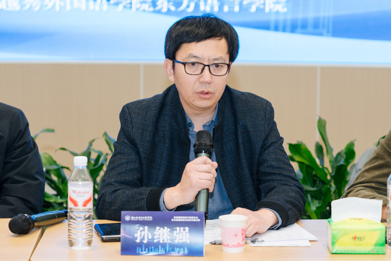 在专家意见与建议部分,与会专家刘国柱教授、王广涛教授、王晖教授、许悦雷教授、胡明远教授、袁征教授、韩献栋教授、孙继强教授依次进行了发言。专家们一致肯定了我校专家团队及青年教师为东北亚研究中心智库建设及区域国别学硕士点申报做出的努力,并指出应立足浙江,发挥民办高校优势,挖掘越秀特色,将成果转化服务于地方政府;同时也强调外语教师应扩大知识面,了解国情与地区情况,快速找准转型方向。最后,我校东北亚研究中心诸葛蔚东教授、金健人教授等专家也提出了中肯建议。该环节由浙江越秀外国语学院东方语言学院副院长马小明副教授主持。