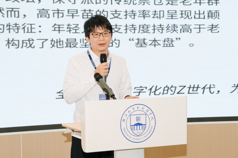 在上半场,苏州大学孙继强教授、浙江大学刘国柱教授、复旦大学王广涛教授分别围绕“区域国别视域下近代以来日本涉华宣传的特点及其启示”“美国对竞争性安全环境认知变化与国防工业体系的再造”“日本政局变化及对中日关系影响”等主题开展发言;随后,辽宁大学许悦雷教授、中国政法大学韩献栋教授、吉林省社会科学院王晖研究员分别围绕“代际裂变与政治新叙事——高市早苗在青年群体中的支持动力分析”“朝鲜半岛问题及其研究方法”“特朗普2.0政府对朝政策考量与展望”等主题开展发言。主题发言上半场由浙江越秀外国语学院东北亚研究中心卢冬丽副教授主持。