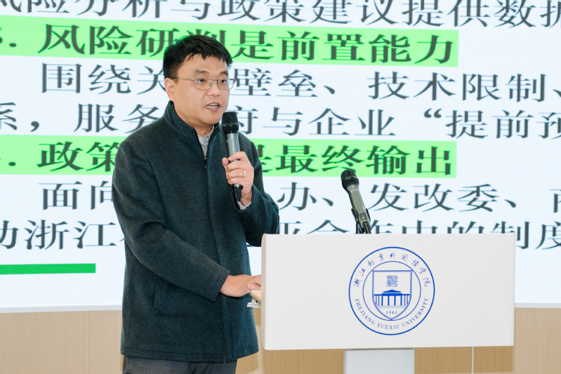 最后,闭幕式环节,邱鸣教授为本次大会作总结发言。他首先向与会专家致以感谢。随后,围绕“为什么要做区域国别学研究”“怎么做区域国别学研究”分享了自己的见解,强调研究应立足浙江、突出特色。接着,他就区域国别学申报硕士点的三个分方向设想进行了说明。邱教授指出,开展区域国别学——智库研究既是响应国家战略需求,也是契合浙江作为经济大省的区域优势;同时,学校的支持为研究提供了坚实保障。他鼓励本校教师积极投身参与研究,并展望了学科发展的广阔前景。