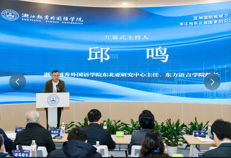 2025年12月13日,由浙江越秀外国语学院主办、我校东北亚研究中心与东方语言学院承办的“区域国别视域下的浙江与东北亚国家的交流合作”研讨会在稽山校区成功举办。本次研讨会汇聚了来自北京语言大学、中国社科院美国研究所、苏州大学、浙江大学、复旦大学、辽宁大学、中国政法大学、吉林省社会科学院、大连民族大学等多所知名高校与机构的专家,共同深入探讨区域国别视域下浙江与东北亚国家的交流合作。 在大会开幕式上,浙江越秀外国语学院魏小琳常务副校长与教育部国别和区域研究工作秘书处主任罗林教授分别致开幕辞。开幕式由浙江越秀外国语学院东北亚研究中心主任、东方语言学院院长邱鸣教授主持。