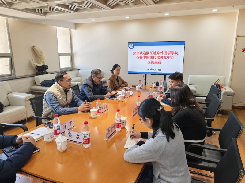 2026年1月12日,浙江越秀外国语学院东北亚研究中心主任邱鸣带队,前往中国科学院现代化研究中心进行走访调研。双方围绕“一带一路”倡议与浙江经济社会发展、东北亚地区政治经济形势以及共同课题研究等议题展开了深入交流。 中国科学院现代化研究中心主任梁昊光对邱鸣主任一行到访表示欢迎,并系统介绍了中心的发展历程、研究定位以及近年来取得的主要成果。他表示,期待双方能在国家发展战略与浙江经济社会发展的对接、东北亚政治经济政策共同研究等领域进一步拓展交流渠道,深化合作。 邱鸣主任重点介绍了东北亚研究中心的发展历程及研究成果。他表示,作为绍兴市首个省级智库平台,东北亚研究中心始终围绕服务国家东北亚战略、助力浙江高质量发展这一核心使命,聚焦浙江与日本、韩国、朝鲜等国在经济合作、文化传播与风险治理三大领域的互动关系,依托高校学科与科研团队优势,为浙江省对外经济合作提供智力支持。 座谈会上,双方一致同意以此次交流为契机,未来将在共同开展课题研究、撰写东北亚专报、加强人员交流等方面进一步推进务实合作。